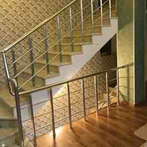 Paslanmayan poladdan (nerjaveyka) hazırlanmış, üfüqi borulu pilləkən məhəccər.